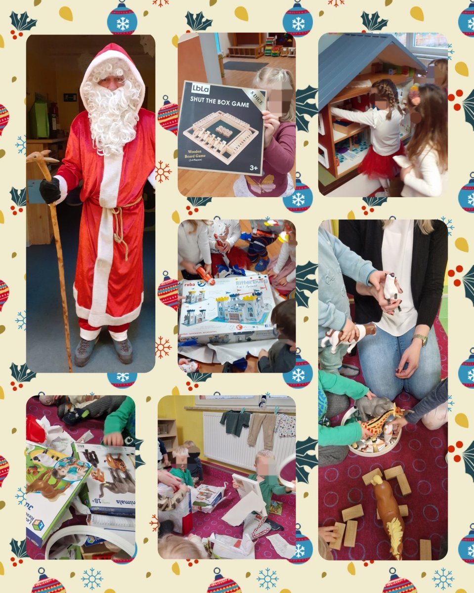 Den Wichteln brachte der Weihnachtsmann einen Kinderspiegel und neue Tiere zum Spielen mit. Für die Zwerge und Riesen hatte der Weihnachtsmann so einige tolle Überraschungen im Gepäck. Über eine Ritterburg, ein Puppenhaus, ein Mathematik-Spiel und neues Zubehör für den Kaufladen haben sich die Kinder sehr gefreut. Mit viel Begeisterung wurden die neuen Spielsachen ausgepackt und natürlich sofort ausprobiert.