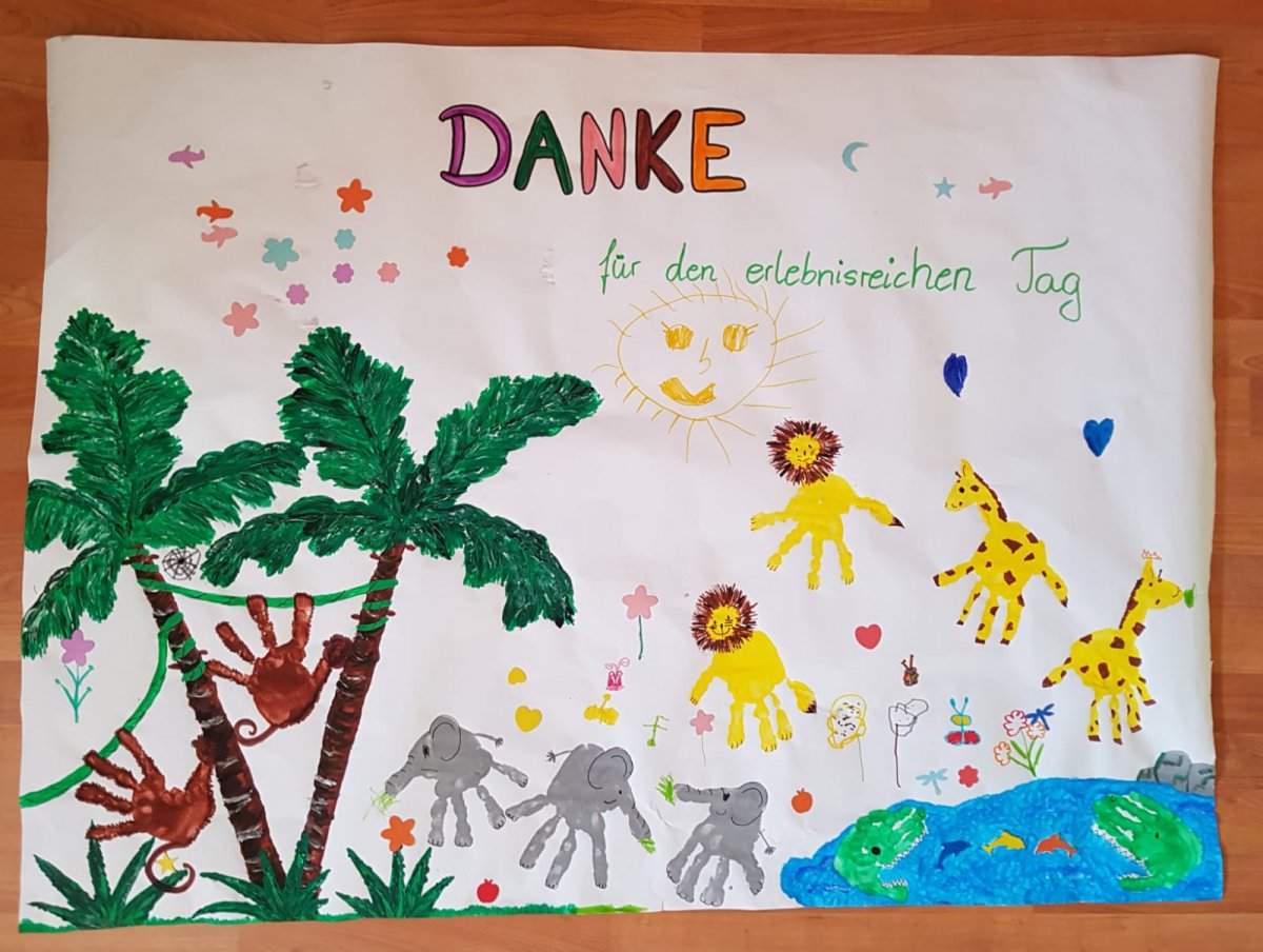 wir, die Kinder und Erzieher des Kinderland Ringleben möchten uns sehr für die Unterstützung mit den Sportmaterialien bedanken. Schön, dass Sie an uns gedacht haben. Das wissen wir sehr zu schätzen! Unsere Einrichtung ist ein bewegungsfreundlicher Kindergarten. Wir verfügen über einen großen Turnraum. Da findet sich natürlich, zur Freude der Kinder, immer Platz für solche Geschenke. Da wir auf das Thema „Bewegung“ fokussiert sind, ist dies eine Bereicherung, um dem Bewegungsmangel der heutigen Zeit entgegen zu wirken. Es ermöglicht uns als Pädagogen noch mehr, die Kinder in unserem Kindergarten positiv an Bewegungsangebote heran zu führen. Das Toben auf den Matten macht richtig Spaß. Auch als Fallschutz finden sie in unserem Turnraum Verwendung. Viele großartige Ballspiele sind bei den Kindern sehr beliebt. Die Bänke bieten die vielfältigsten Möglichkeiten sich ebenfalls sportlich zu betätigen, aber auch als Sitzgelegenheit zum Ausruhen. Die Kinder des Kinderland Ringleben haben ihre Freude über die tollen Materialien in künstlerischer Form zu Papier gebracht. Auf diese Art und Weise sagen sie DANKE.