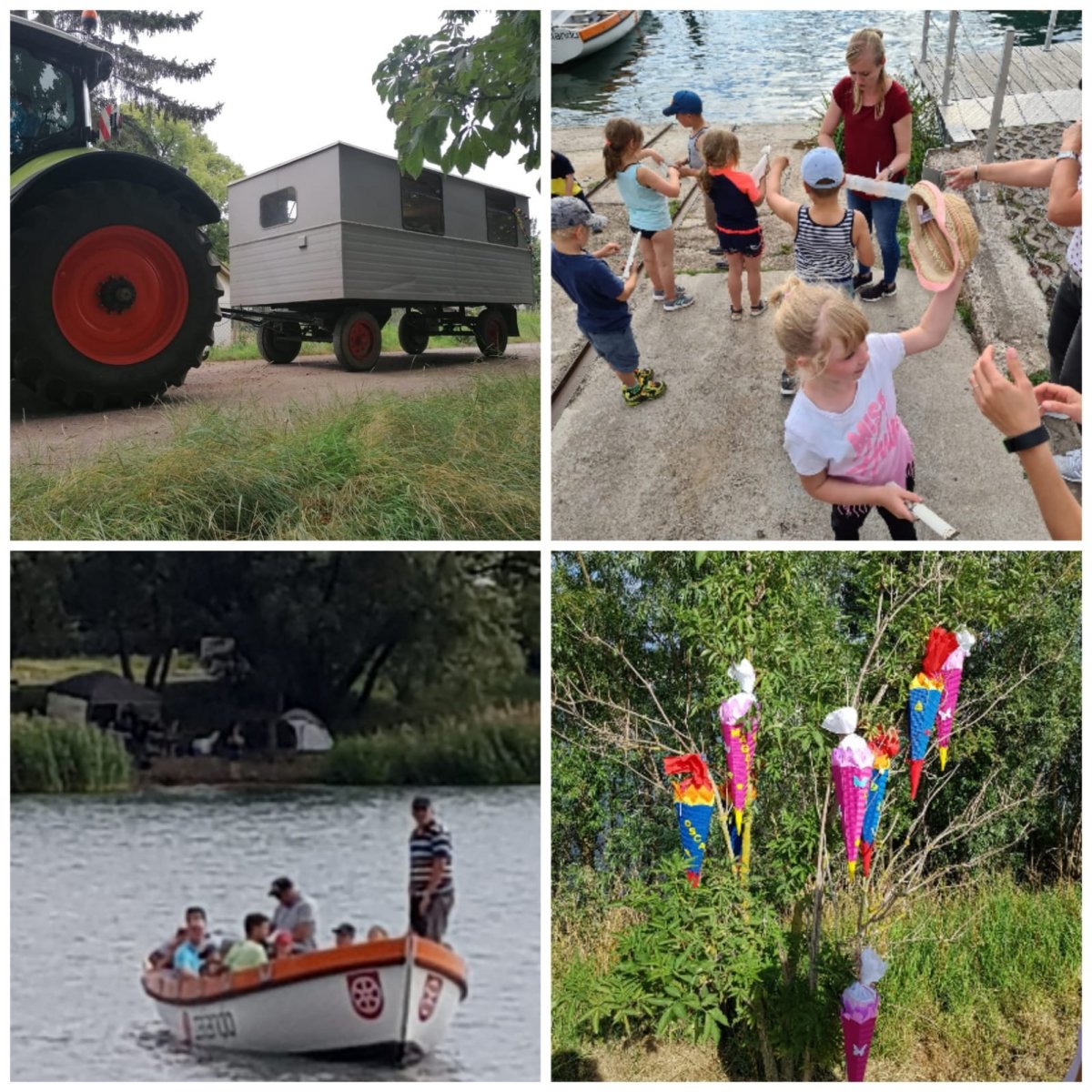 Am 17.07.2020 feierten wir gemeinsam mit den Schulanfängern und ihren Eltern das Zuckertütenfest am Alperstedter See. Pünktlich zur Kaffeezeit wurden alle 8 Vorschüler von Herrn Nessel mit dem Traktor vom Kindergarten abgeholt. Die Eltern hatten am See schon alles vorbereitet, die Tische waren liebevoll gedeckt, der Kuchen stand bereit.....nur die Erzieher fehlten noch!!!! Gemeinsam saßen wir dann gemütlich beisammen und erzählten uns lustige Anekdoten aus der 5jährigen Kindergartenzeit. - Wo ist die Zeit geblieben? - Das Highlight des Tages war natürlich die Bootsfahrt auf dem Alperstedter See, alle waren schon aufgeregt und wollten endlich auf`s Wasser. In der Zwischenzeit bereiteten die Erzieher eine Schatzsuche rund um den See vor, es mußten Quizfragen beantwortet, ein Schatz ausgegraben und die heißersehnten Zuckertüten gefunden werden. Ein wenig erschöpft aber immerhin die Zuckertüten im Arm, ließen alle noch kleine Boote am Rand des Sees schwimmen. Bei Bratwurst und Brätel ließen wir dann gemeinsam mit den Kindern und Eltern den wunderschönen Tag ausklingen. Wir sagen vielen Dank an die Eltern; Herrn Nessel und natürlich an den Club Maritim. welche diesen Tag für unsere Schulanfänger zu einem unvergesslichen Erlebnis gemacht haben. Wir wünschen allen Schulanfängern eine tolle Schulzeit!!!!!!!!! Die Erzieher des Kinderland Ringleben