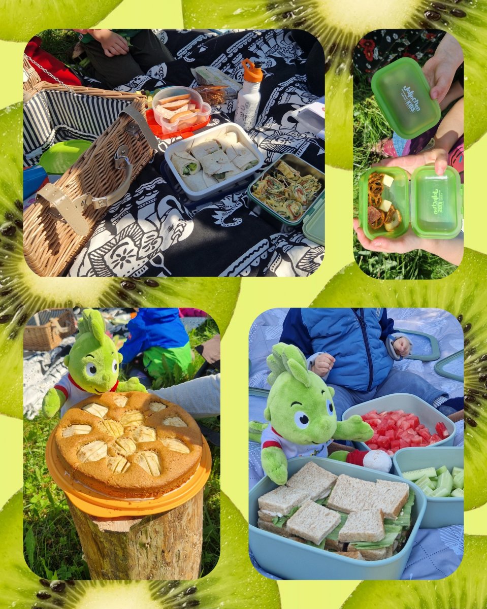 Angelehnt an das Jolinchen Kids Projekt der AOK starteten wir am 08.05.2024 gemeinsam mit dem Drachenkind Jolinchen zu unserem alljährlichen Familienwandertag. Mithilfe eines Bilderrätsels, ähnlich einer Schatzkarte, suchten sich alle Teilnehmer den Weg zum Ziel. Unterwegs gab es natürlich wie immer das ein oder andere Rätsel zu lösen. Diesmal testete Jolinchen das Wissen unserer Kinder und Eltern zum Thema gesunde Ernährung. Die Fragen zum Drachenzug, zur Ernährungspyramide, den verschiedenen Ernährungsgruppen und Co. waren gar nicht so leicht zu beantworten, doch gemeinsam im Team fanden wir des Rätsels Lösung. Unser Weg führte uns schlussendlich in den Garten der Familie Lindner. Wandern und Aufgaben lösen kann sehr anstrengend sein. Zur Belohnung ließen sich alle das leckere und vor allem gesunde Picknick mit Obst, Gemüse, Wraps und zuckerfreiem Kuchen schmecken. Als Durstlöscher gab es selbstverständlich auch eine gesunde Alternative. Am Vormittag bereiteten die Erzieherinnen gemeinsam mit den Kindern eine gesunde Limonade zu. Diese bestand aus Wasser, Zitronen- und Orangenscheiben. Abgeschmeckt haben wir unsere Limo so wie es sich für Ringleber gehört, nämlich mit Pfefferminze aus eigener Ernte. Nach der langen Wanderung war das eine angenehme Erfrischung. Eine große Überraschung für die Kinder gab es dann noch…im Garten war ein Schatz versteckt! Jolinchen hatte für die Kinder ein paar Malbücher und kleine Snackdosen für Obst und Gemüse dabei. Nach erfolgreicher Schatzsuche ließen wir den Wandertag gemütlich ausklingen. Es war ein wundervoller Nachmittag und wir freuen uns schon aufs nächste Jahr.